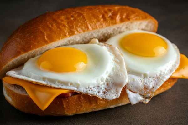 Two eggs cooked any style and topped with American cheese on a bread roll.
